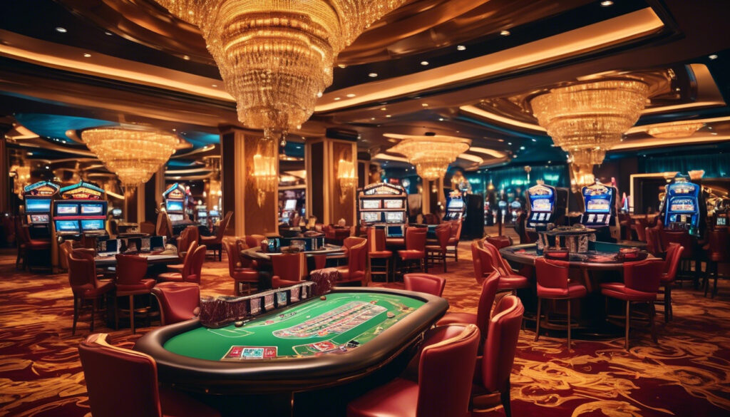 The gaming floor features the latest gaming technology, blending seamlessly with sleek design and comfort. We’re not just playing games; we’re stepping into a world where innovation meets elegance.